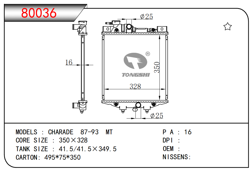 適用于寶馬E30 320 i 82-93 AT散熱器