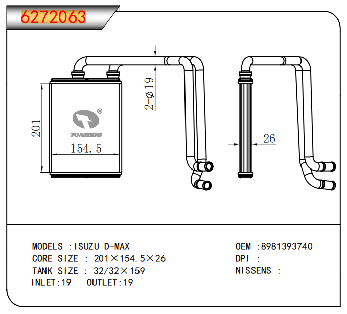 適用于奇瑞瑞虎(新款) MT散熱器 OEM : F1301000B1
