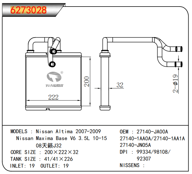 適用于寶馬 E30 320 i 82-93 AT散熱器OEM:1723 825/1719 261