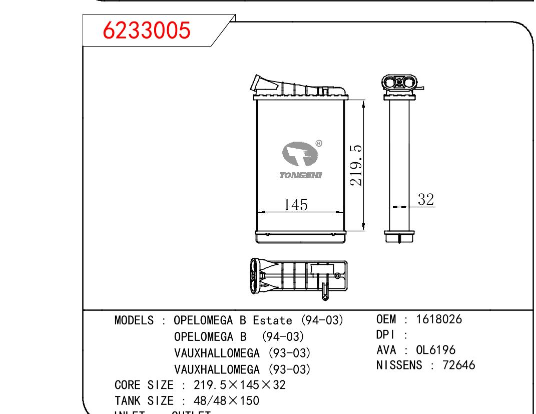 適用于奇瑞瑞虎(新款) MT散熱器 OEM : F1301000B1