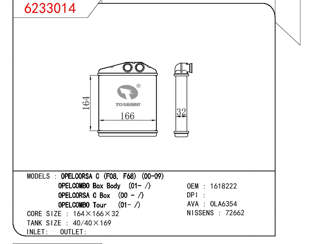 適用于奇瑞瑞虎(新款) MT散熱器 OEM : F1301000B1