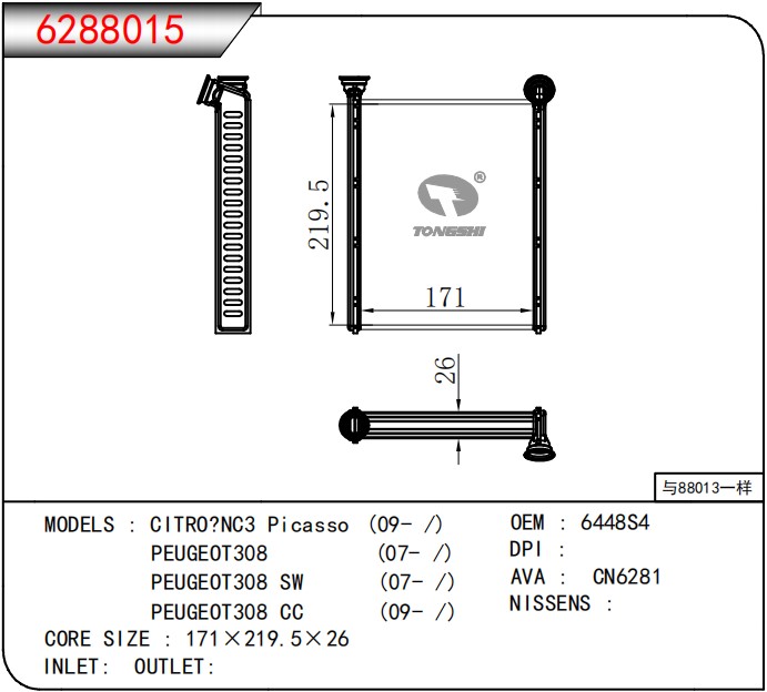 適用于奇瑞瑞虎(新款) MT散熱器 OEM : F1301000B1