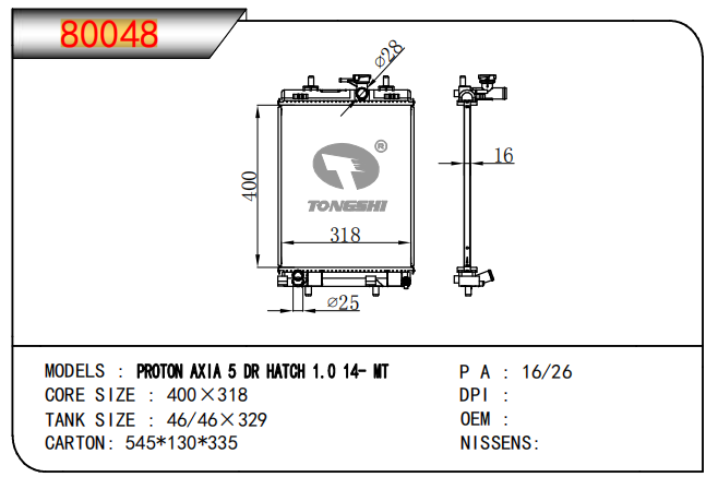 適用于奇瑞瑞虎(新款) MT散熱器 OEM : F1301000B1