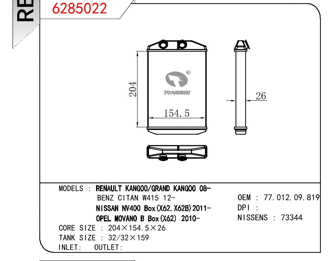 適用于奇瑞瑞虎(新款) MT散熱器 OEM : F1301000B1