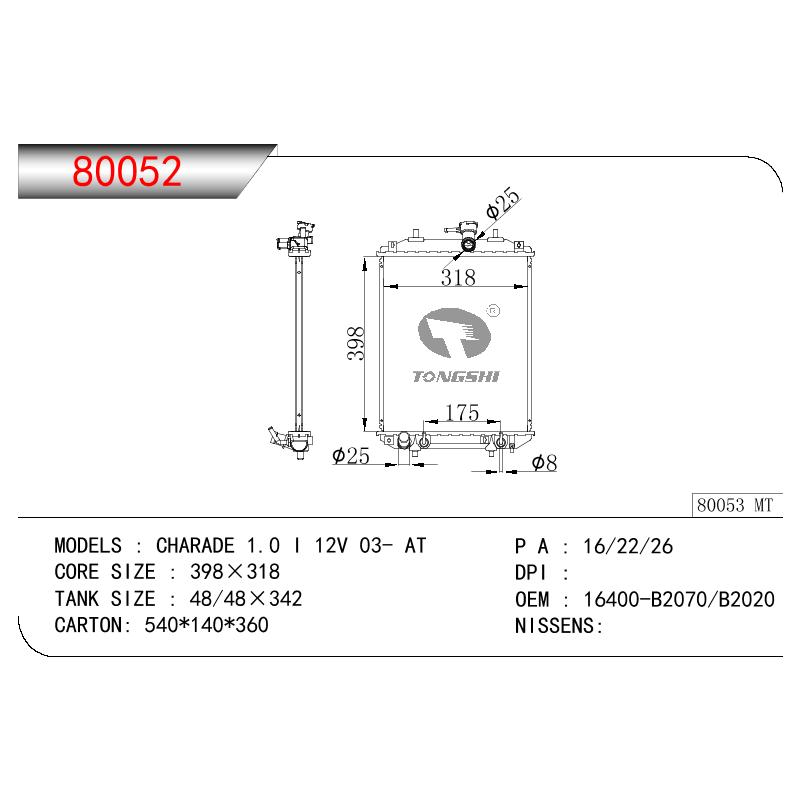 適用于奇瑞瑞虎(新款) MT散熱器 OEM : F1301000B1