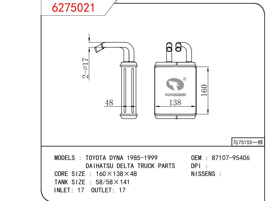 適用于奇瑞瑞虎(新款) MT散熱器 OEM : F1301000B1
