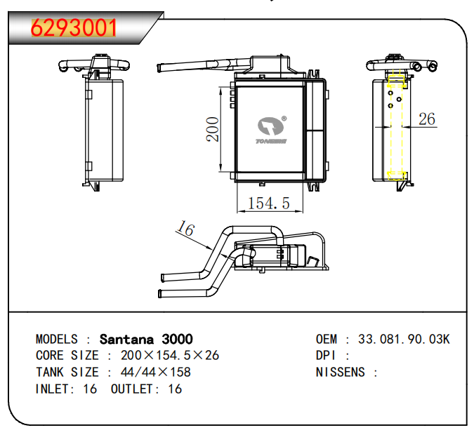 適用于奇瑞瑞虎(新款) MT散熱器 OEM : F1301000B1