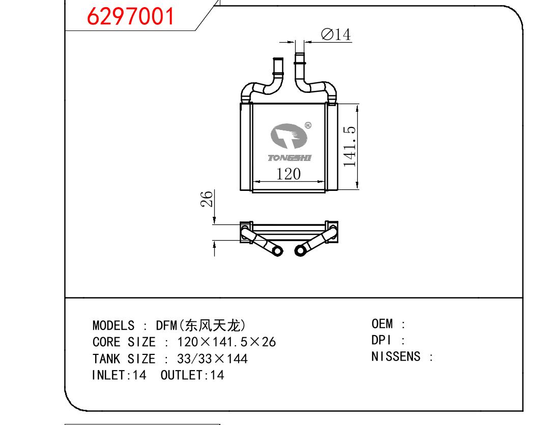 適用于奇瑞瑞虎(新款) MT散熱器 OEM : F1301000B1