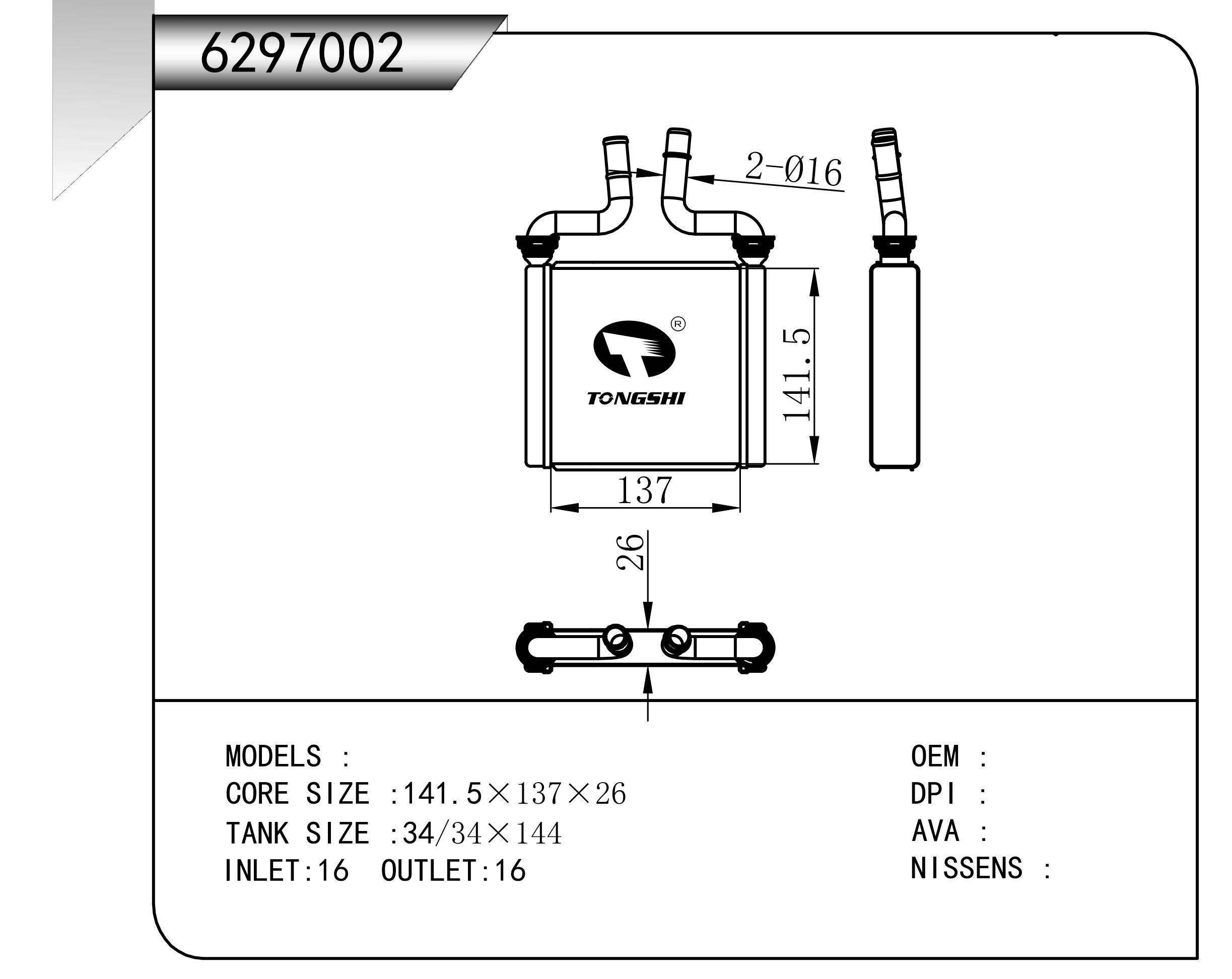 適用于奇瑞瑞虎(新款) MT散熱器 OEM : F1301000B1