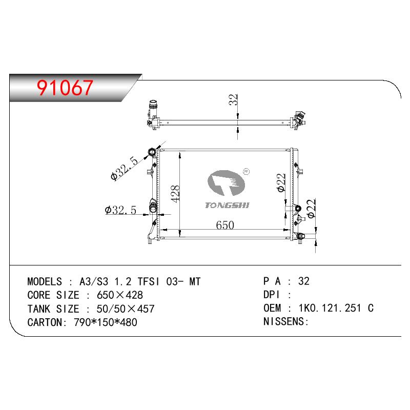適用于奇瑞瑞虎(新款) MT散熱器 OEM : F1301000B1