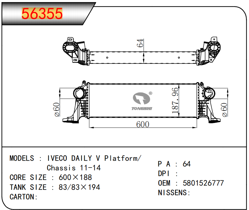 適用于奇瑞瑞虎(新款) MT散熱器 OEM : F1301000B1