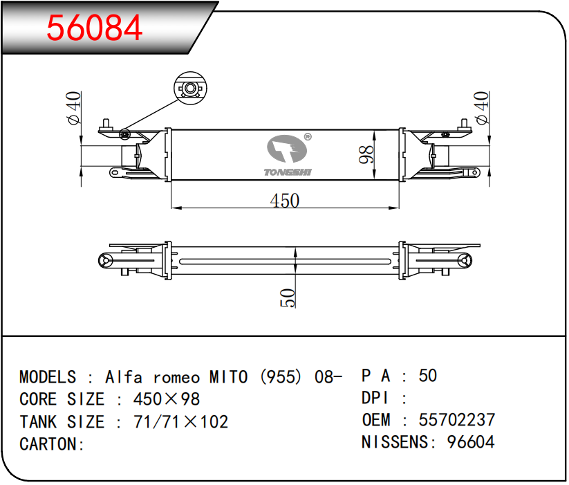 適用于奇瑞瑞虎(新款) MT散熱器 OEM : F1301000B1