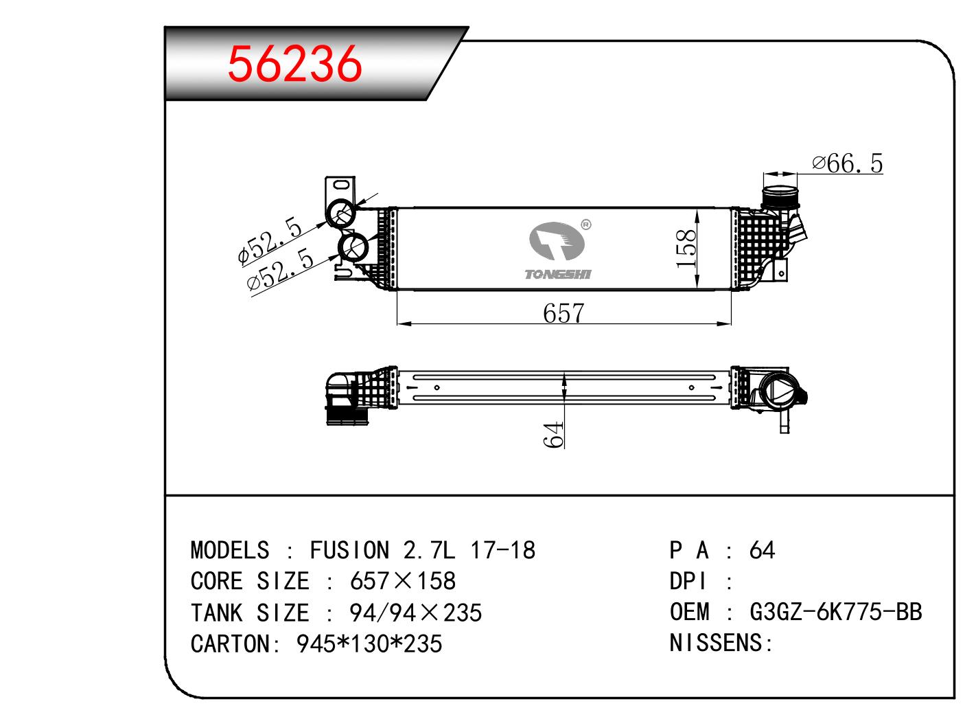 適用于奇瑞瑞虎(新款) MT散熱器 OEM : F1301000B1