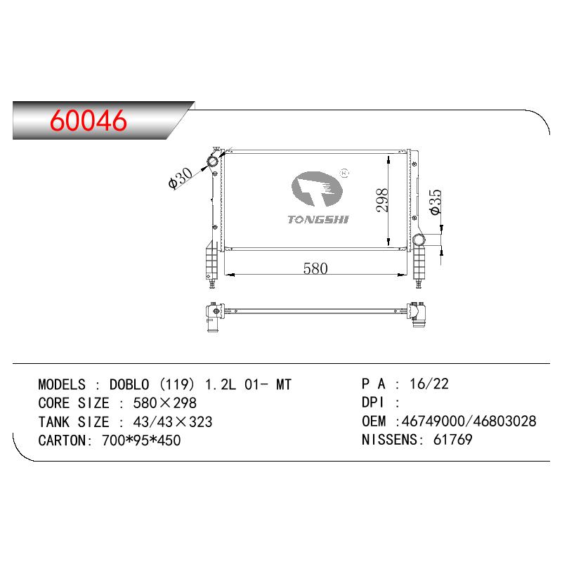 適用于奇瑞瑞虎(新款) MT散熱器 OEM : F1301000B1