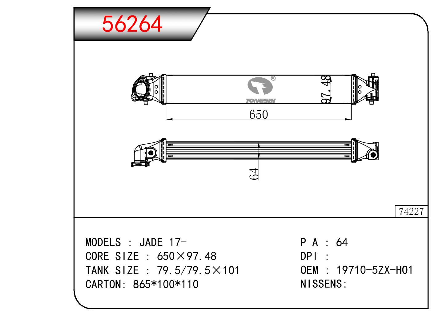 適用于奇瑞瑞虎(新款) MT散熱器 OEM : F1301000B1