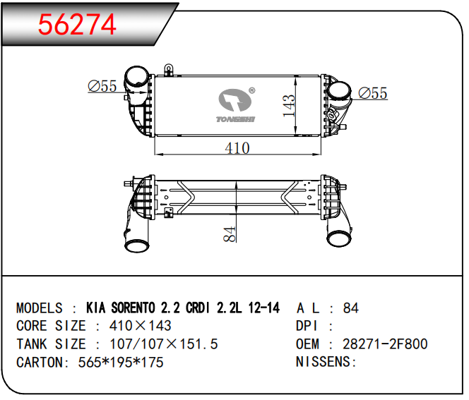 適用于奇瑞瑞虎(新款) MT散熱器 OEM : F1301000B1