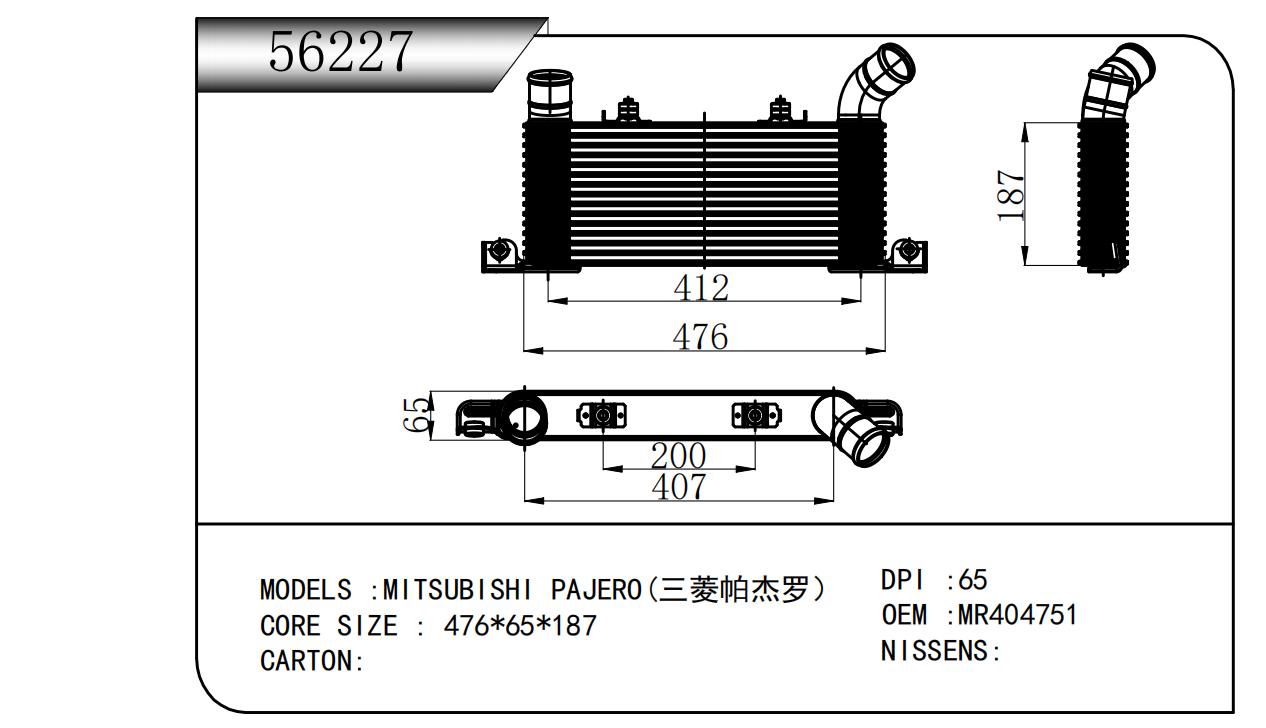 適用于奇瑞瑞虎(新款) MT散熱器 OEM : F1301000B1