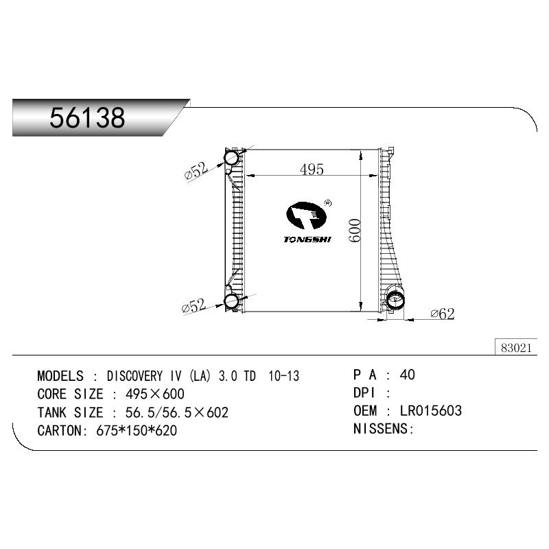 適用于奇瑞瑞虎(新款) MT散熱器 OEM : F1301000B1