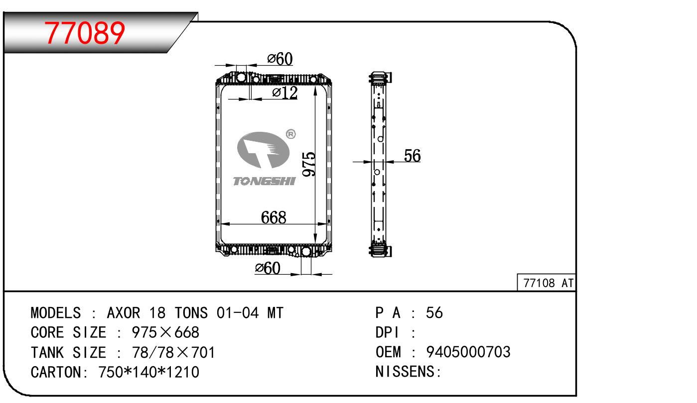 適用于奇瑞瑞虎(新款) MT散熱器 OEM : F1301000B1