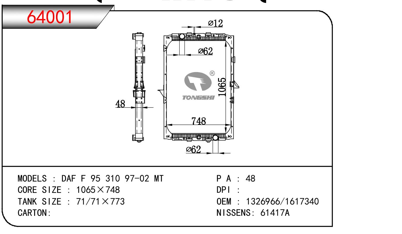 適用于奇瑞瑞虎(新款) MT散熱器 OEM : F1301000B1