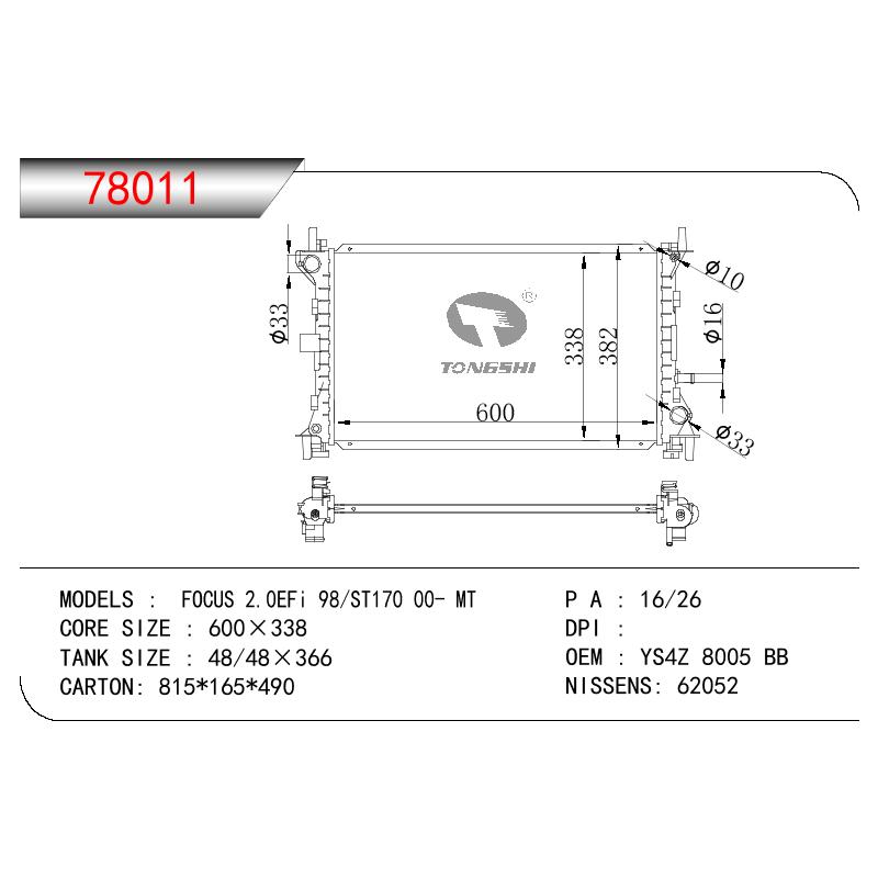 適用于奇瑞瑞虎(新款) MT散熱器 OEM : F1301000B1