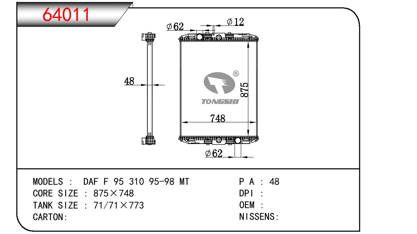 適用于奇瑞瑞虎(新款) MT散熱器 OEM : F1301000B1