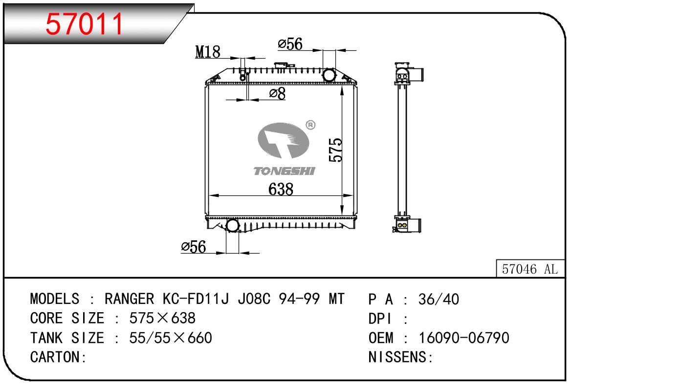 適用于奇瑞瑞虎(新款) MT散熱器 OEM : F1301000B1