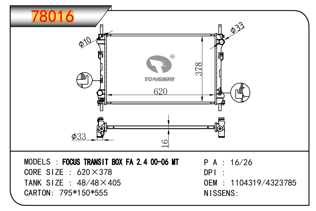 適用于奇瑞瑞虎(新款) MT散熱器 OEM : F1301000B1