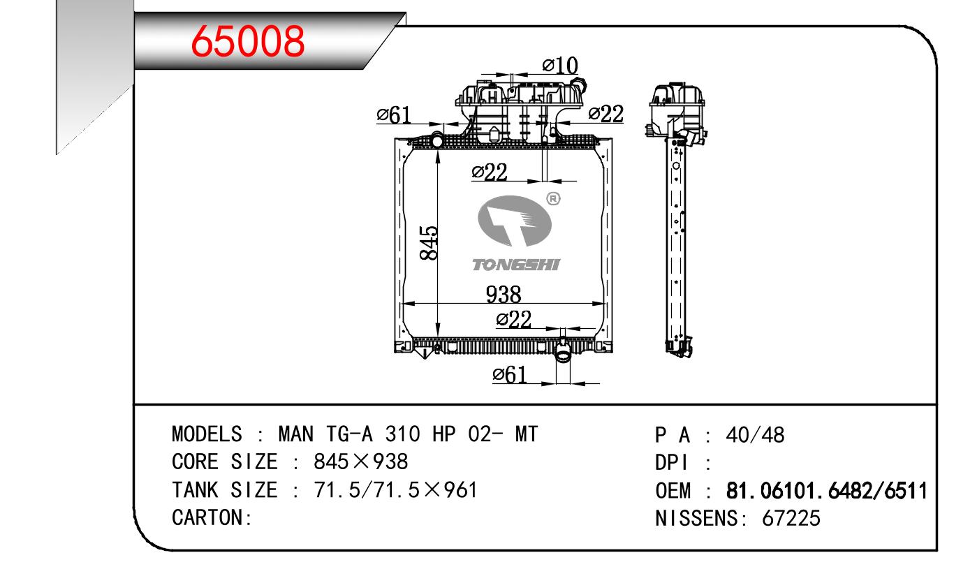 適用于奇瑞瑞虎(新款) MT散熱器 OEM : F1301000B1