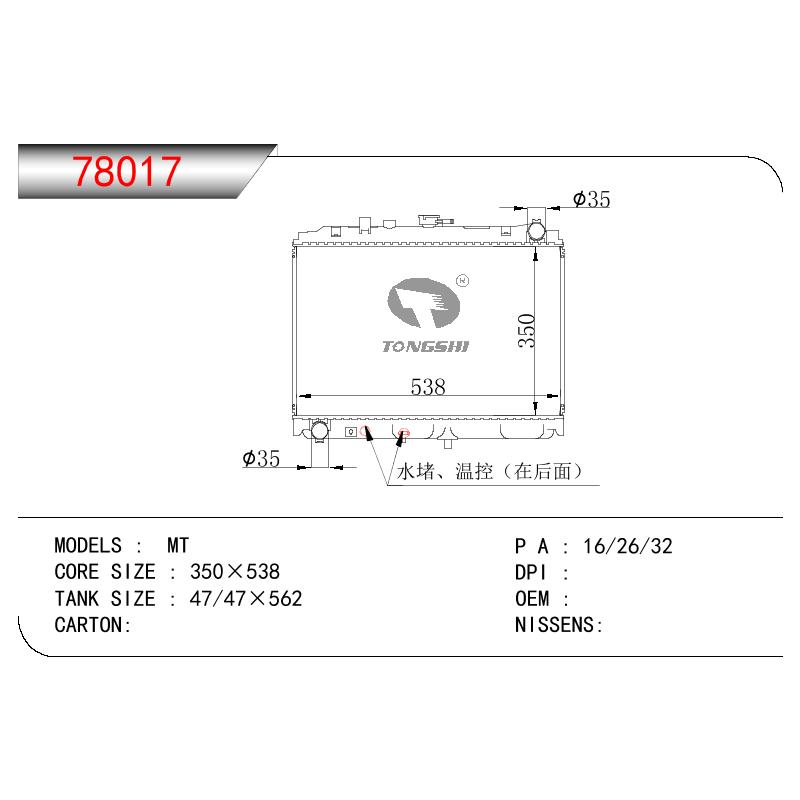 適用于奇瑞瑞虎(新款) MT散熱器 OEM : F1301000B1