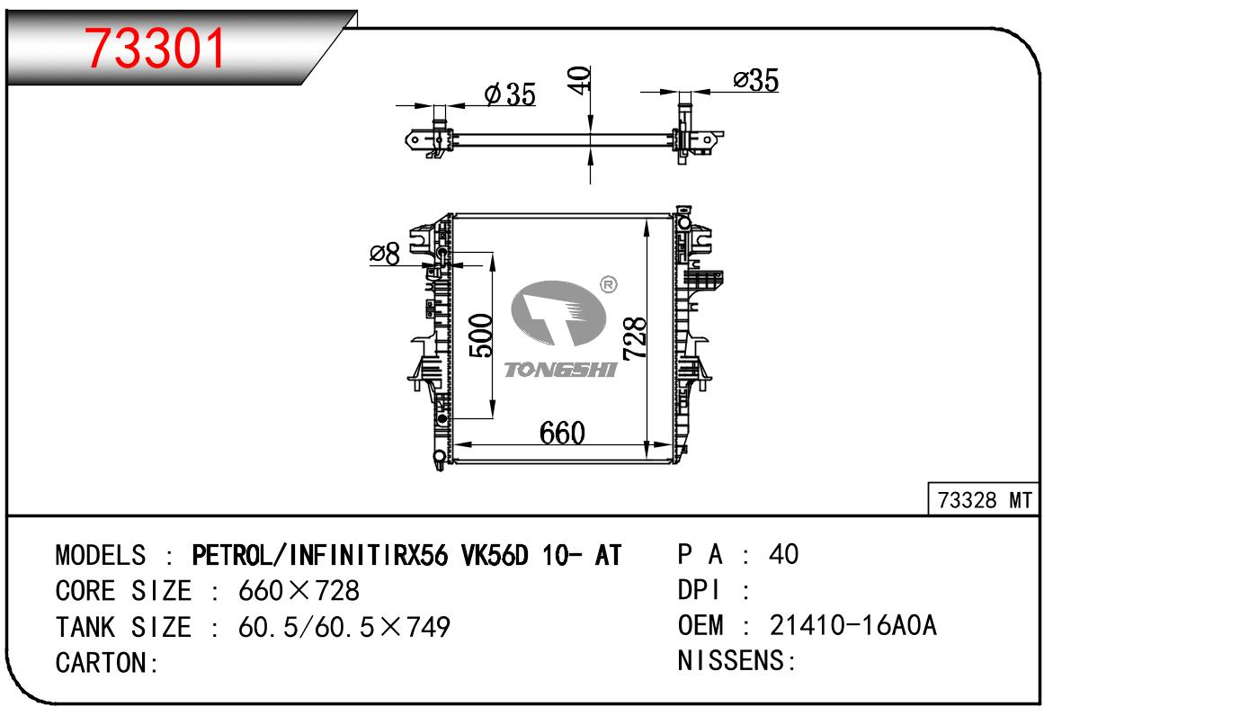 適用于奇瑞瑞虎(新款) MT散熱器 OEM : F1301000B1