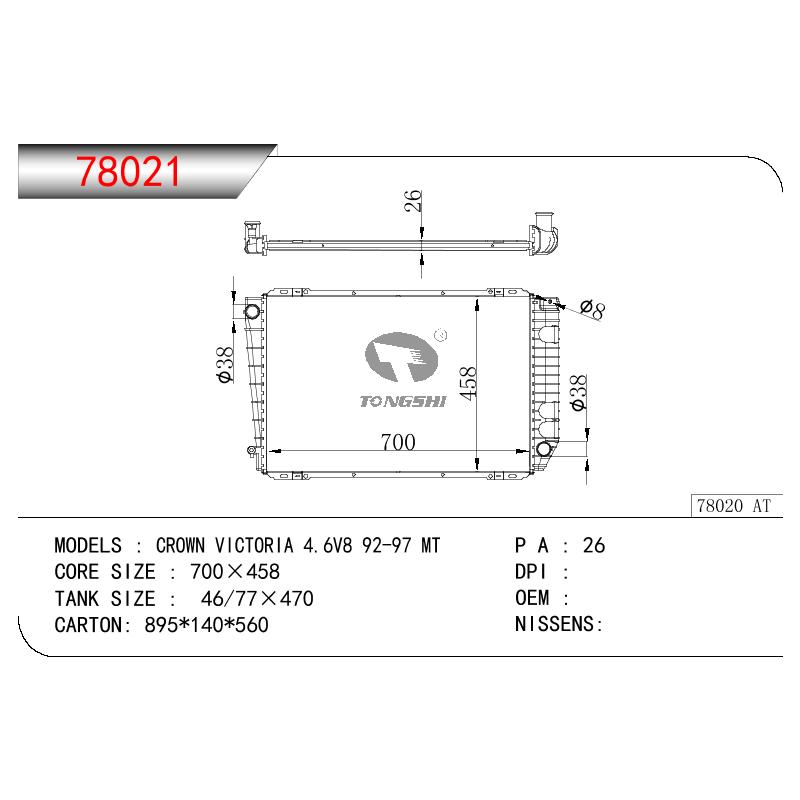 適用于奇瑞瑞虎(新款) MT散熱器 OEM : F1301000B1