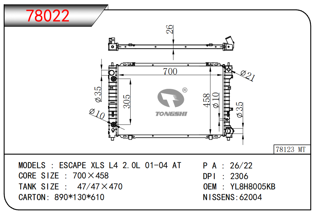 適用于奇瑞瑞虎(新款) MT散熱器 OEM : F1301000B1