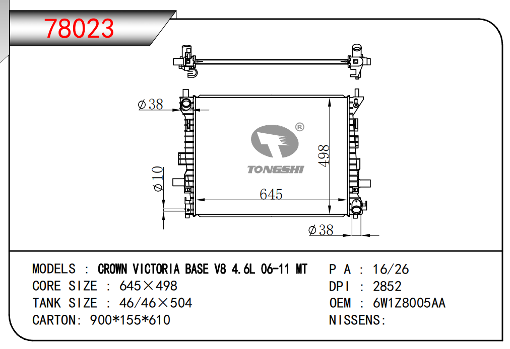 適用于奇瑞瑞虎(新款) MT散熱器 OEM : F1301000B1