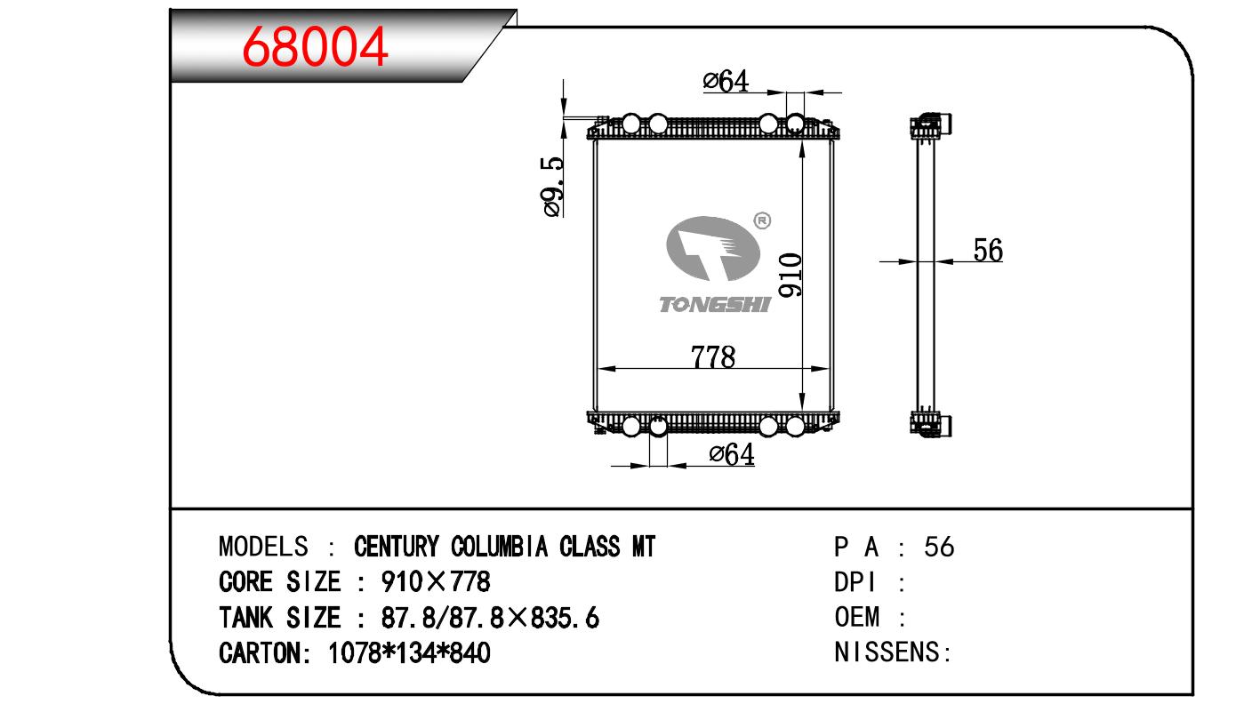 適用于奇瑞瑞虎(新款) MT散熱器 OEM : F1301000B1