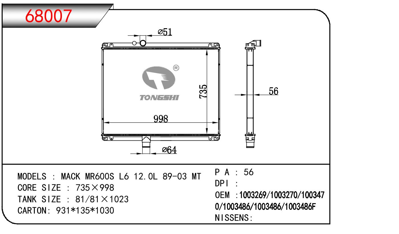 適用于FREIGHTLINER CASCADIA 125/ 113 L6 12.8L 12-13 AT散熱器