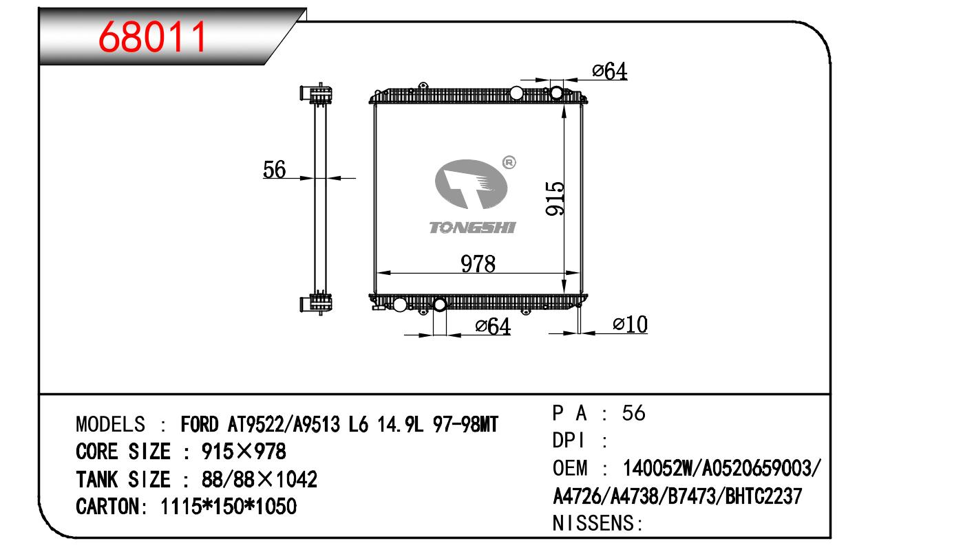 適用于奇瑞瑞虎(新款) MT散熱器 OEM : F1301000B1