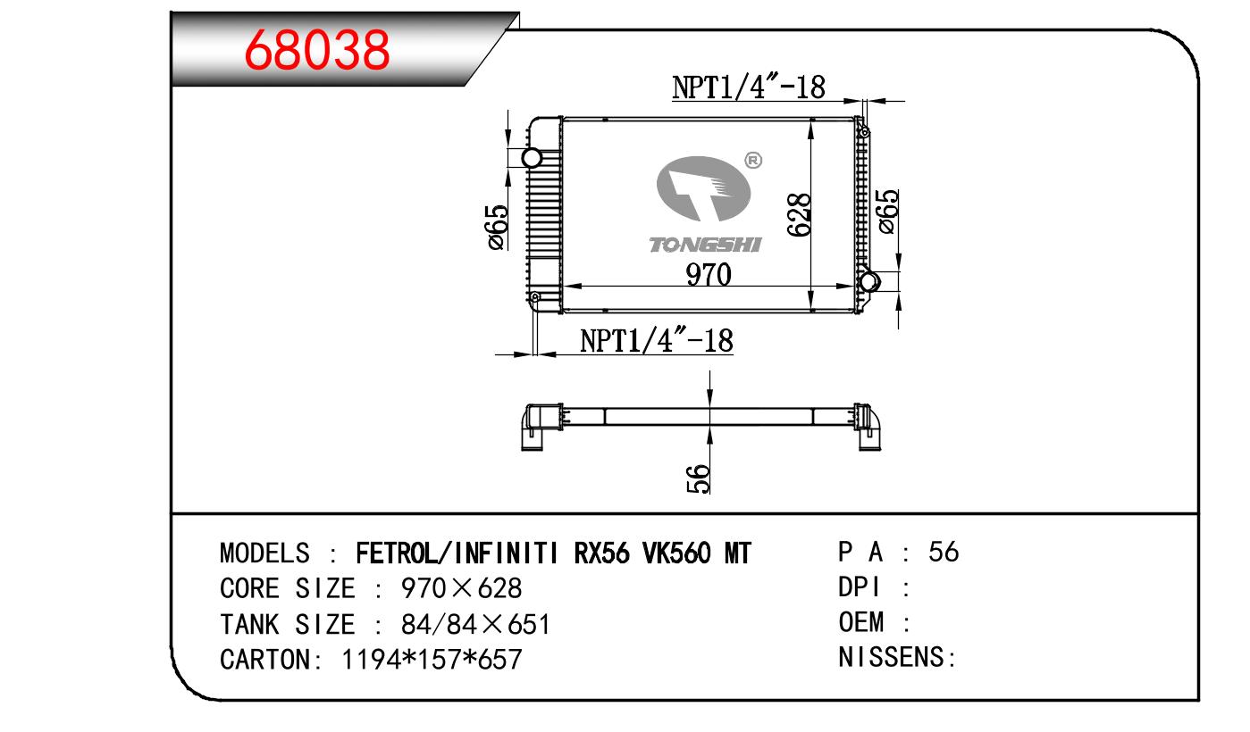 適用于奇瑞瑞虎(新款) MT散熱器 OEM : F1301000B1