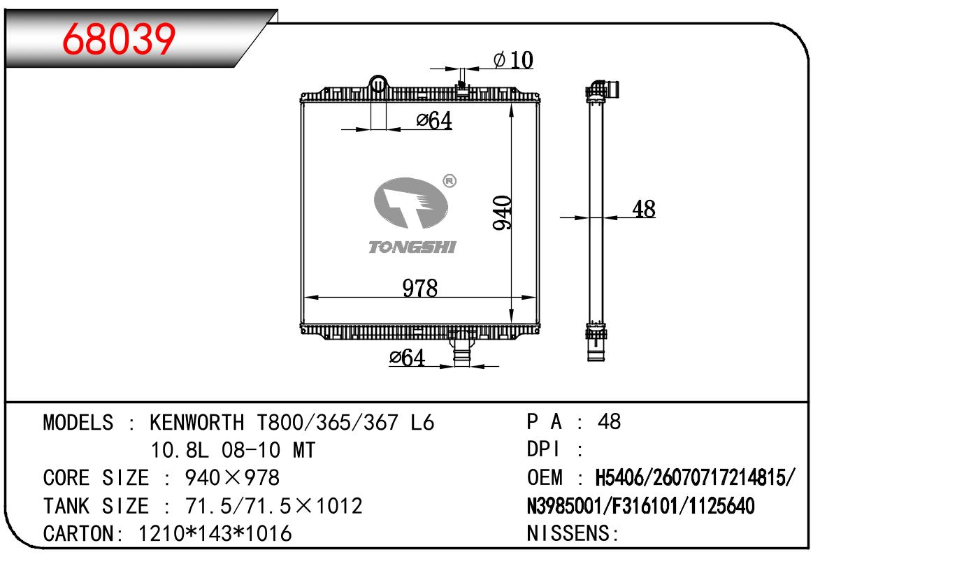 適用于奇瑞瑞虎(新款) MT散熱器 OEM : F1301000B1