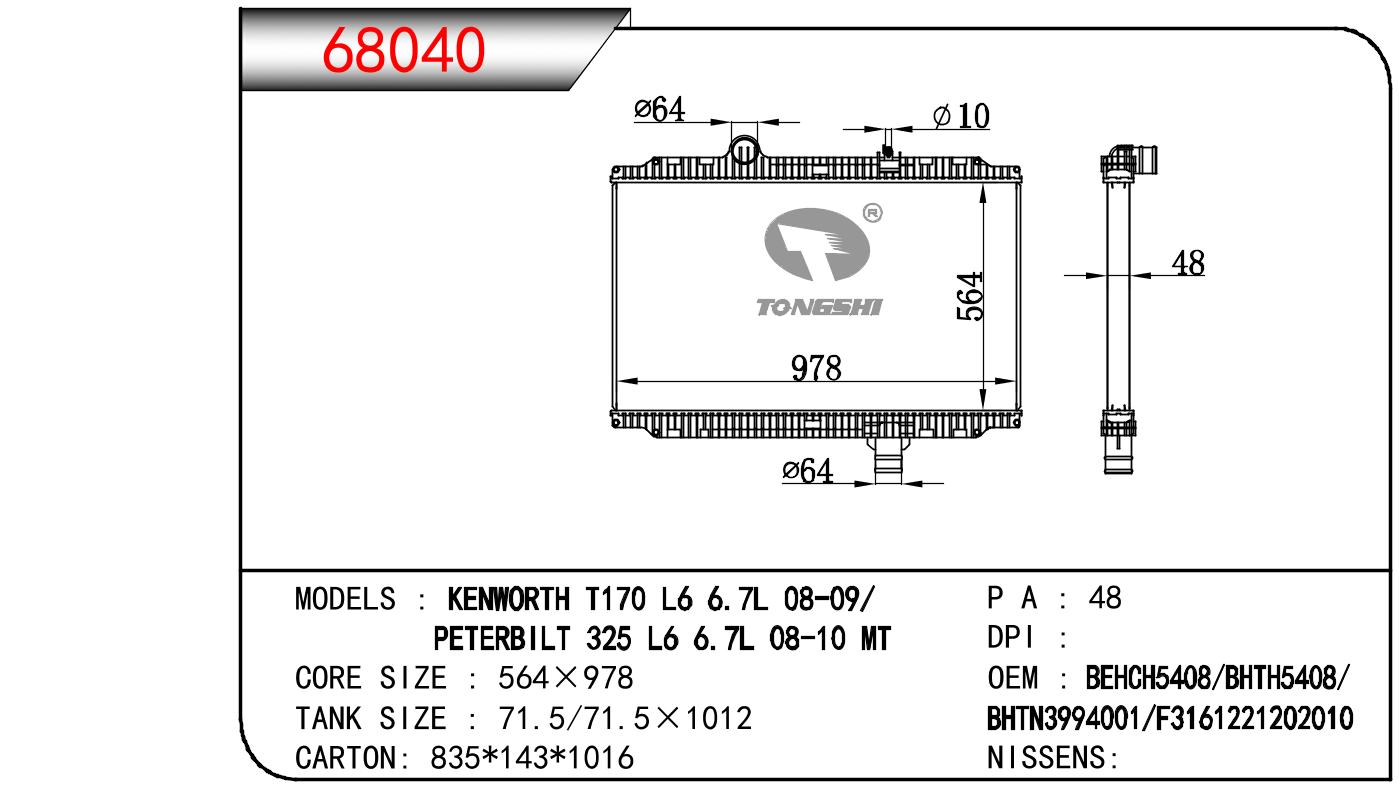 適用于奇瑞瑞虎(新款) MT散熱器 OEM : F1301000B1