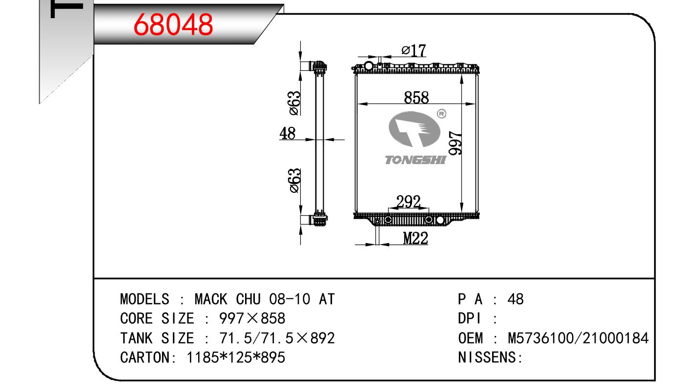 適用于奇瑞瑞虎(新款) MT散熱器 OEM : F1301000B1