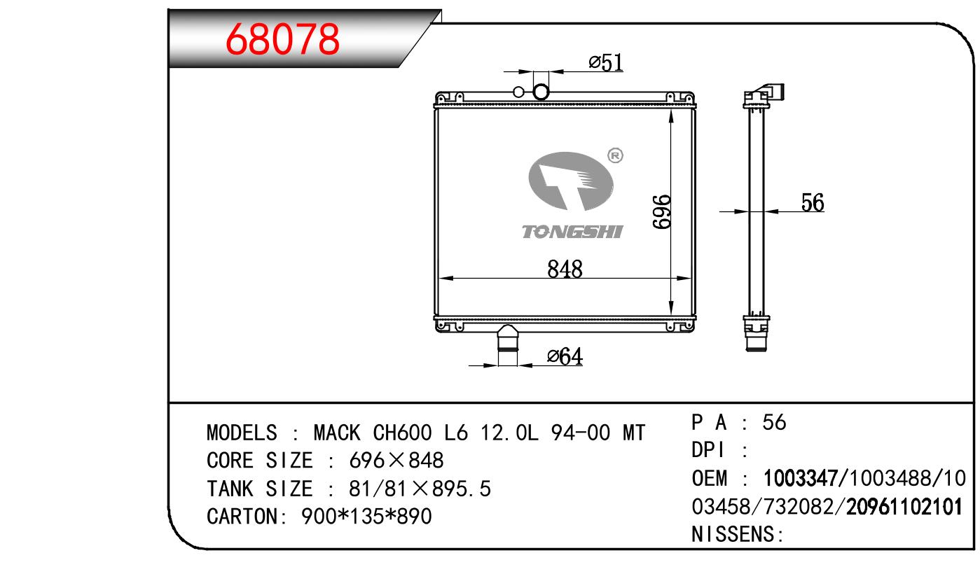 適用于奇瑞瑞虎(新款) MT散熱器 OEM : F1301000B1