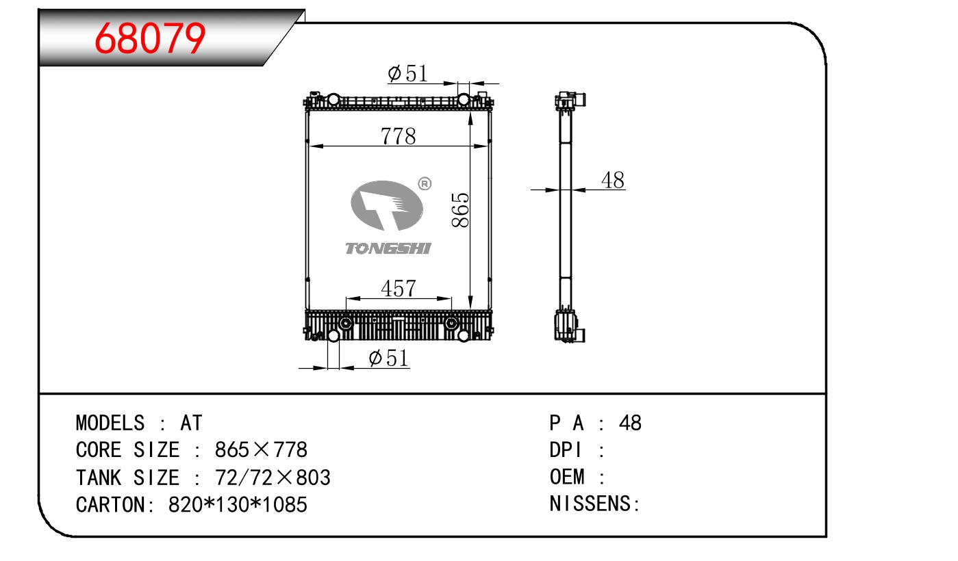 適用于奇瑞瑞虎(新款) MT散熱器 OEM : F1301000B1