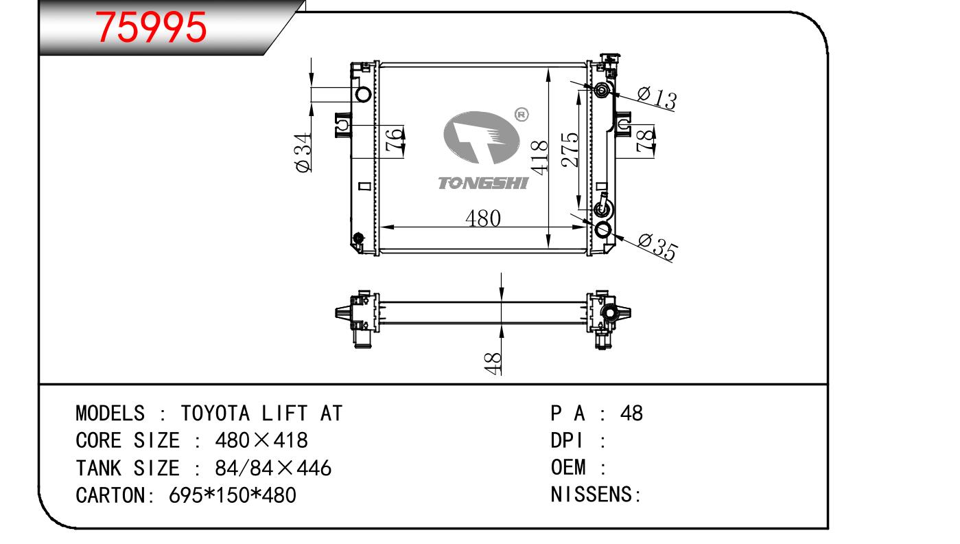 適用于奇瑞瑞虎(新款) MT散熱器 OEM : F1301000B1