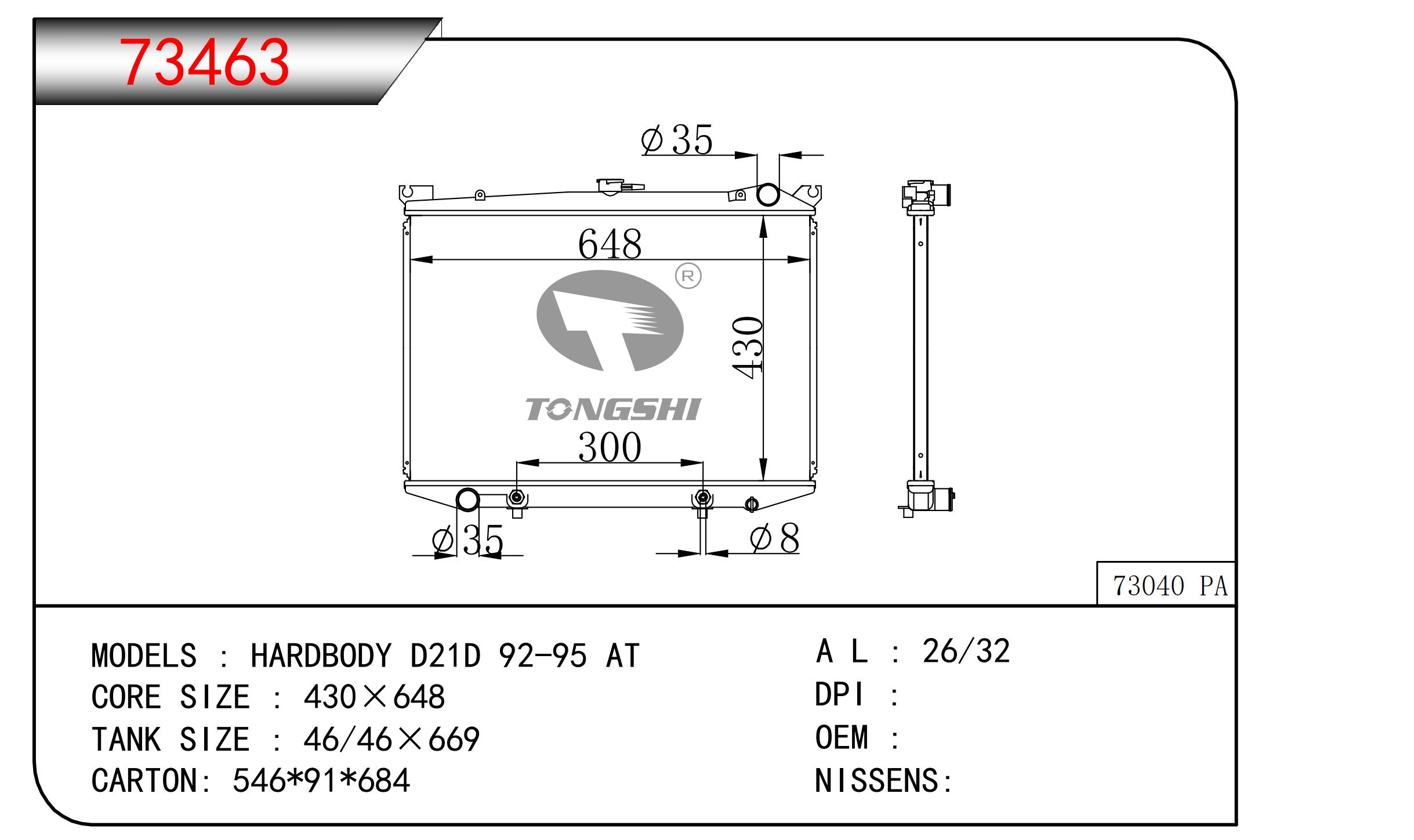 適用于奇瑞瑞虎(新款) MT散熱器 OEM : F1301000B1