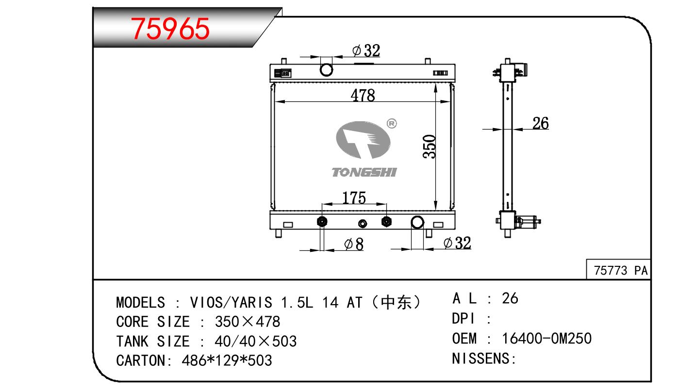 適用于寶馬 E30 320 i 82-93 AT散熱器OEM:1723 825/1719 261