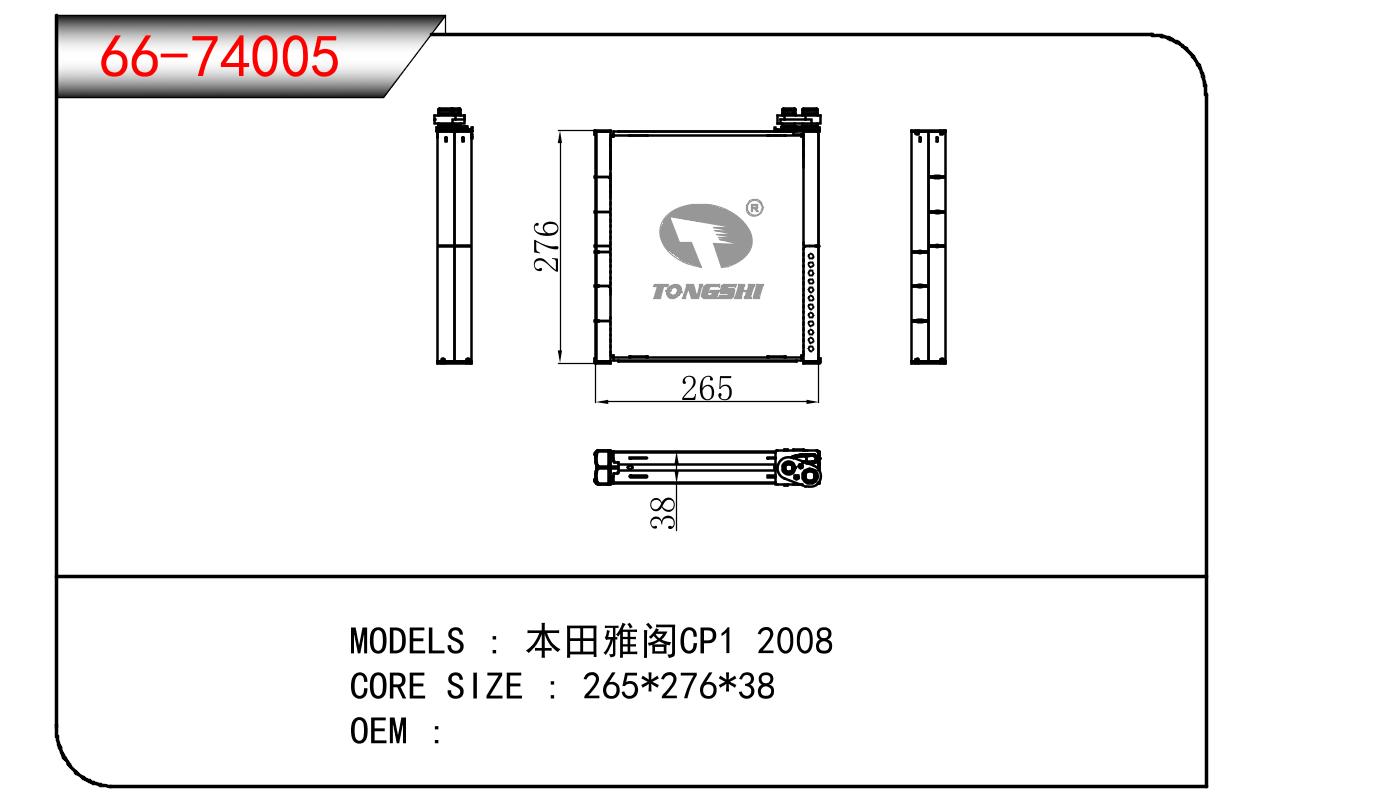 適用于奇瑞瑞虎(新款) MT散熱器 OEM : F1301000B1