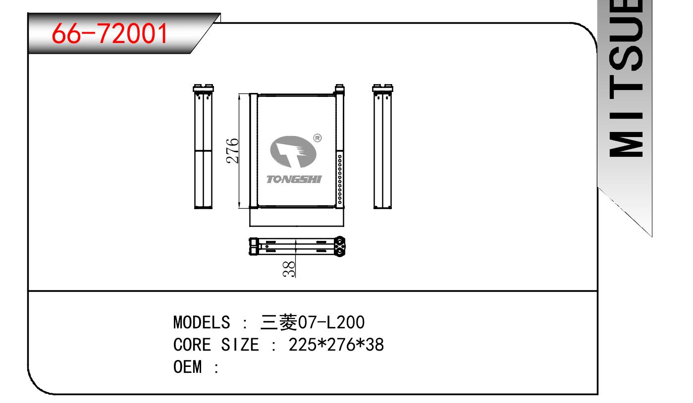 適用于奇瑞瑞虎(新款) MT散熱器 OEM : F1301000B1