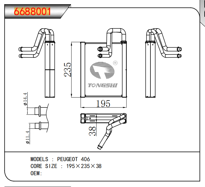 適用于奇瑞瑞虎(新款) MT散熱器 OEM : F1301000B1