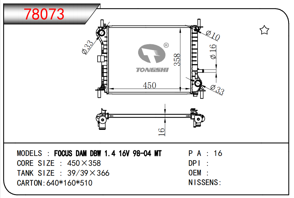 適用于奇瑞瑞虎(新款) MT散熱器 OEM : F1301000B1